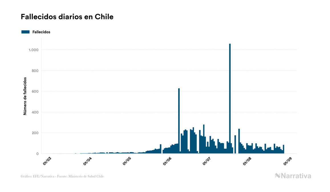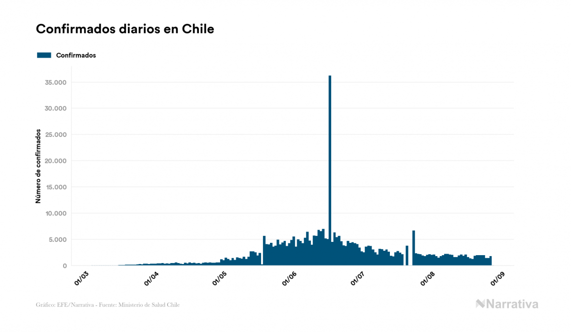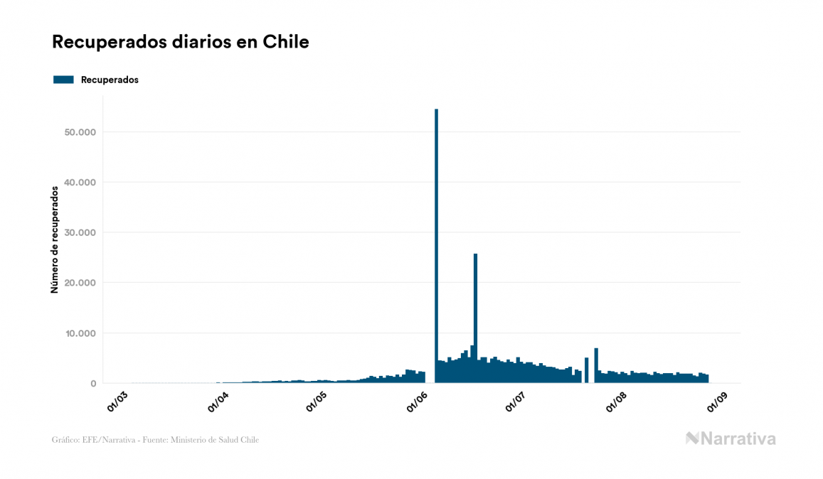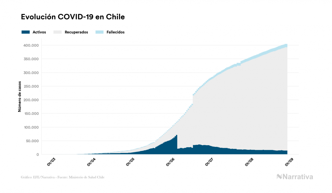El coronavirus deja ya 404.102 casos de contagio en Chile, con 15.108 de ellos actualmente activos y 11.072 fallecidos, según los últimos datos correspondientes al 28 de agosto. Además, un total de 377.922 personas ya se ha recuperado desde que se produjo el primer contagio en el país.