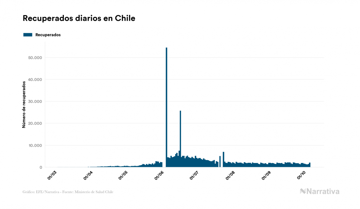 El coronavirus deja ya 473.306 casos de contagio en Chile, con 14.818 de ellos actualmente activos y 13.070 fallecidos, según los últimos datos correspondientes al 7 de octubre. Además, un total de 445.418 personas ya se ha recuperado desde que se produjo el primer contagio en el país.