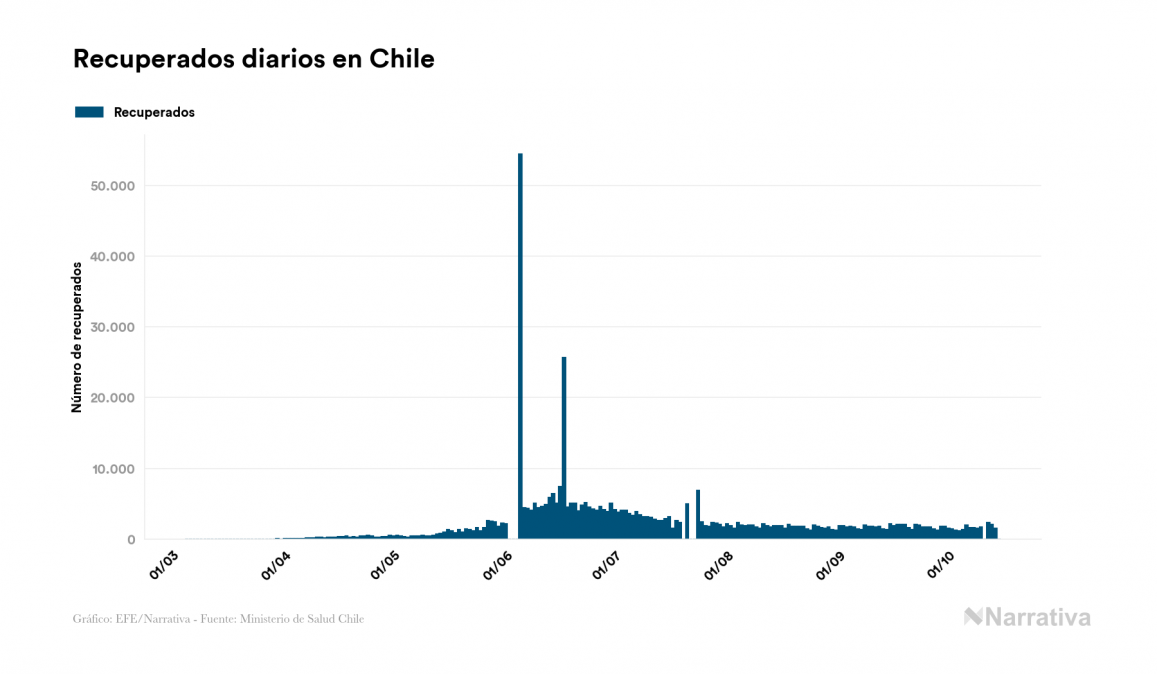 El coronavirus deja ya 485.372 casos de contagio en Chile, con 13.884 de ellos actualmente activos y 13.415 fallecidos, según los últimos datos correspondientes al 15 de octubre. Además, un total de 458.073 personas ya se ha recuperado desde que se produjo el primer contagio en el país.