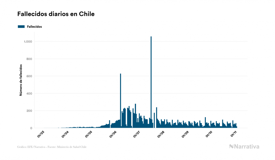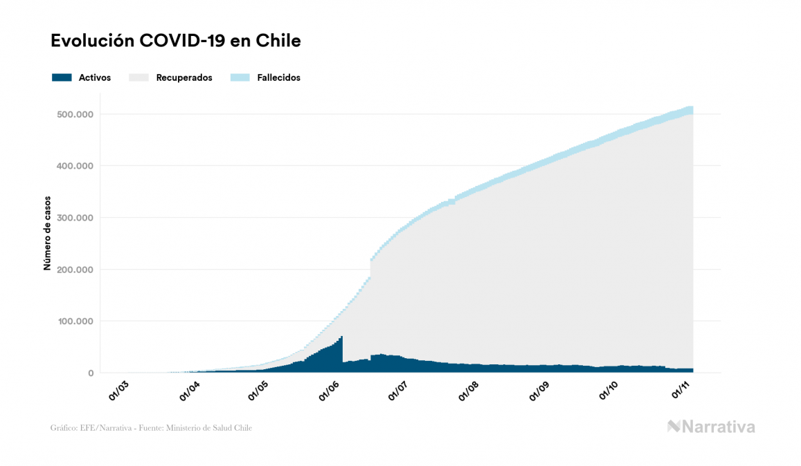 El coronavirus deja ya 514.202 casos de contagio en Chile, con 9.063 de ellos actualmente activos y 14.319 fallecidos, según los últimos datos correspondientes al 4 de noviembre. Además, un total de 490.820 personas ya se ha recuperado desde que se produjo el primer contagio en el país.