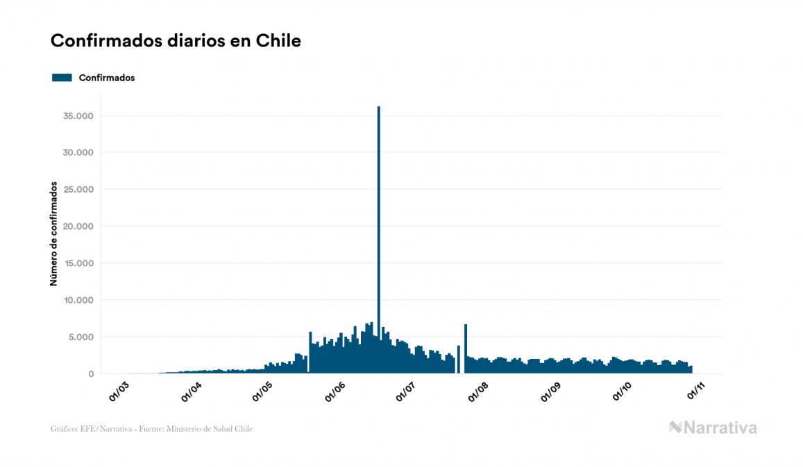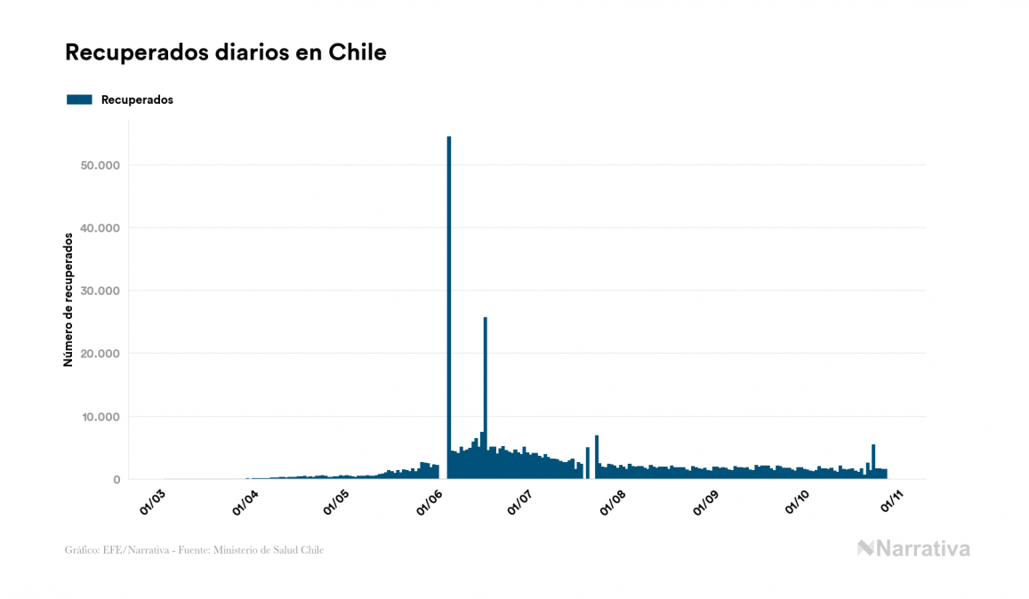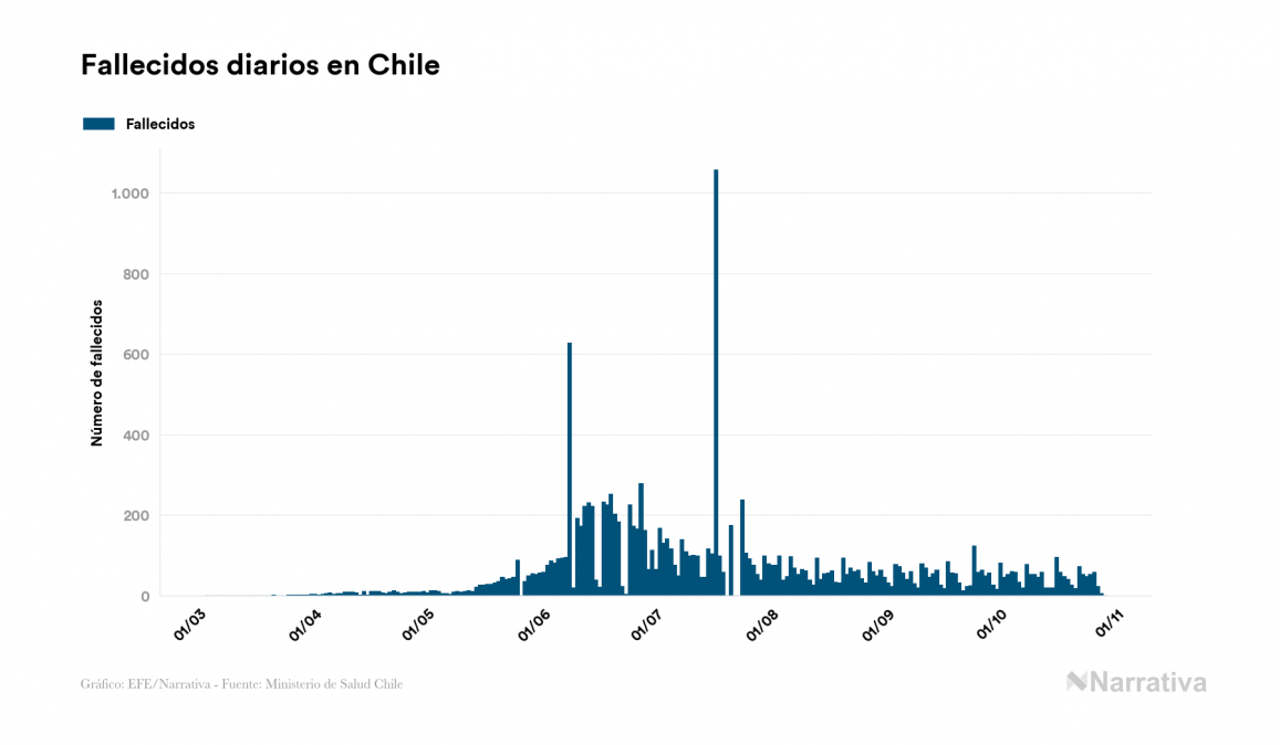 El nuevo coronavirus deja ya 505.530 casos de contagio en Chile, con 8.592 de ellos actualmente activos y 14.032 fallecidos, según los últimos datos correspondientes al 29 de octubre. Además, un total de 482.906 personas ya se ha recuperado desde que se produjo el primer contagio en el país.