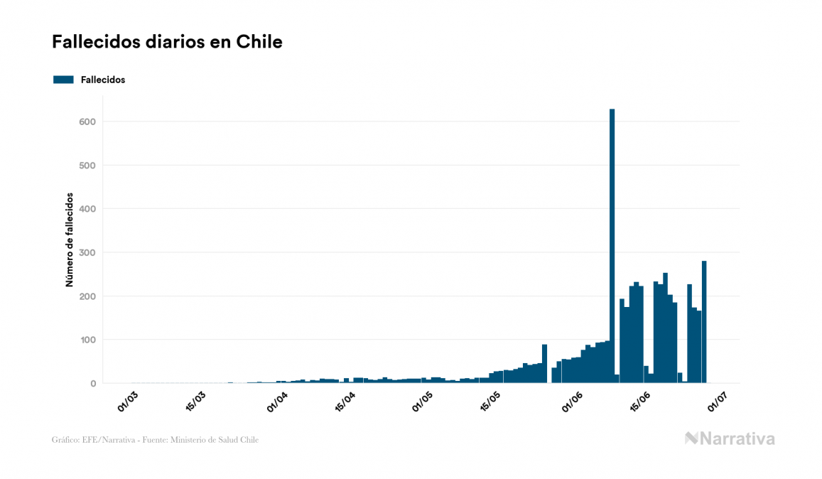 La COVID-19 deja ya 267.766 casos de contagio en Chile, con 34.364 de ellos actualmente activos y 5.347 fallecidos, según los últimos datos correspondientes al 28 de junio. Además, un total de 228.055 personas ya se ha recuperado desde que se produjo el primer contagio en el país.