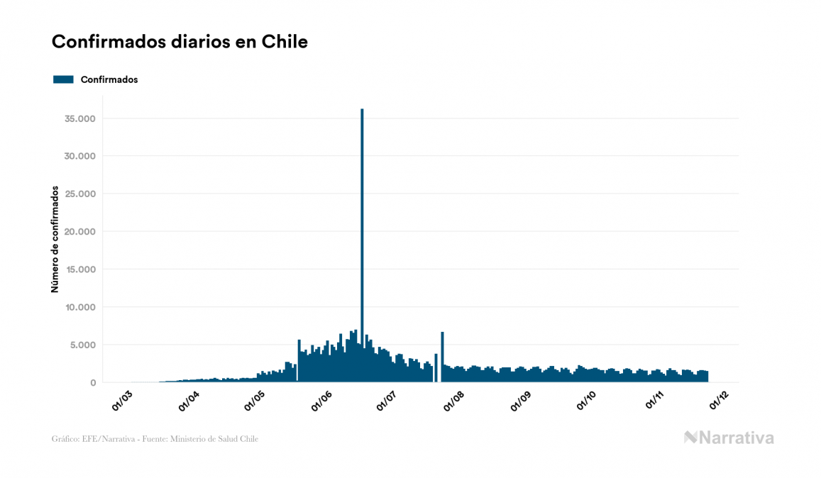 El coronavirus deja ya 542.080 casos de contagio en Chile, con 9.450 de ellos actualmente activos y 15.106 fallecidos, según los últimos datos correspondientes al 24 de noviembre. Además, un total de 517.524 personas ya se ha recuperado desde que se produjo el primer contagio en el país.