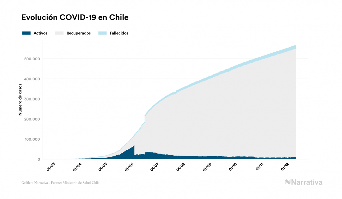 El coronavirus deja ya 566.440 casos de contagio en Chile, con 10.378 de ellos actualmente activos y 15.774 fallecidos, según los últimos datos correspondientes al 11 de diciembre. Además, un total de 540.288 personas ya se ha recuperado desde que se produjo el primer contagio en el país.