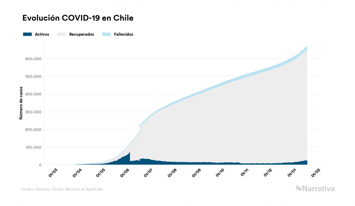 El coronavirus deja ya 665.493 casos de contagio en Chile, con 25.737 de ellos actualmente activos y 17.435 fallecidos, según los últimos datos correspondientes al 17 de enero. Además, un total de 622.321 personas ya se ha recuperado desde que se produjo el primer contagio en el país.
