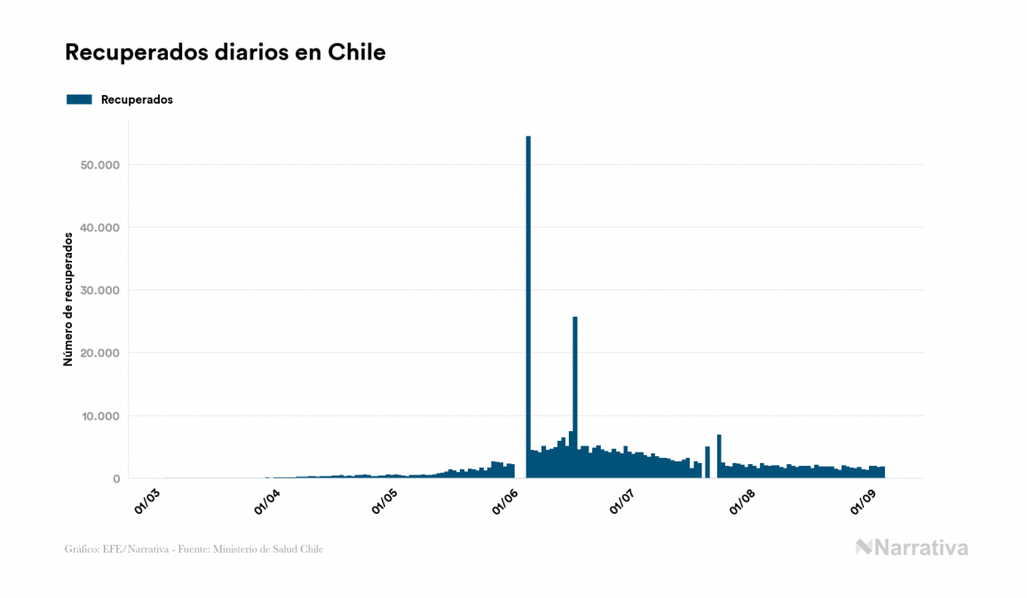 El coronavirus deja ya 418.469 casos de contagio en Chile, con 15.727 de ellos actualmente activos y 11.494 fallecidos, según los últimos datos correspondientes al 5 de septiembre. Además, un total de 391.248 personas ya se ha recuperado desde que se produjo el primer contagio en el país.