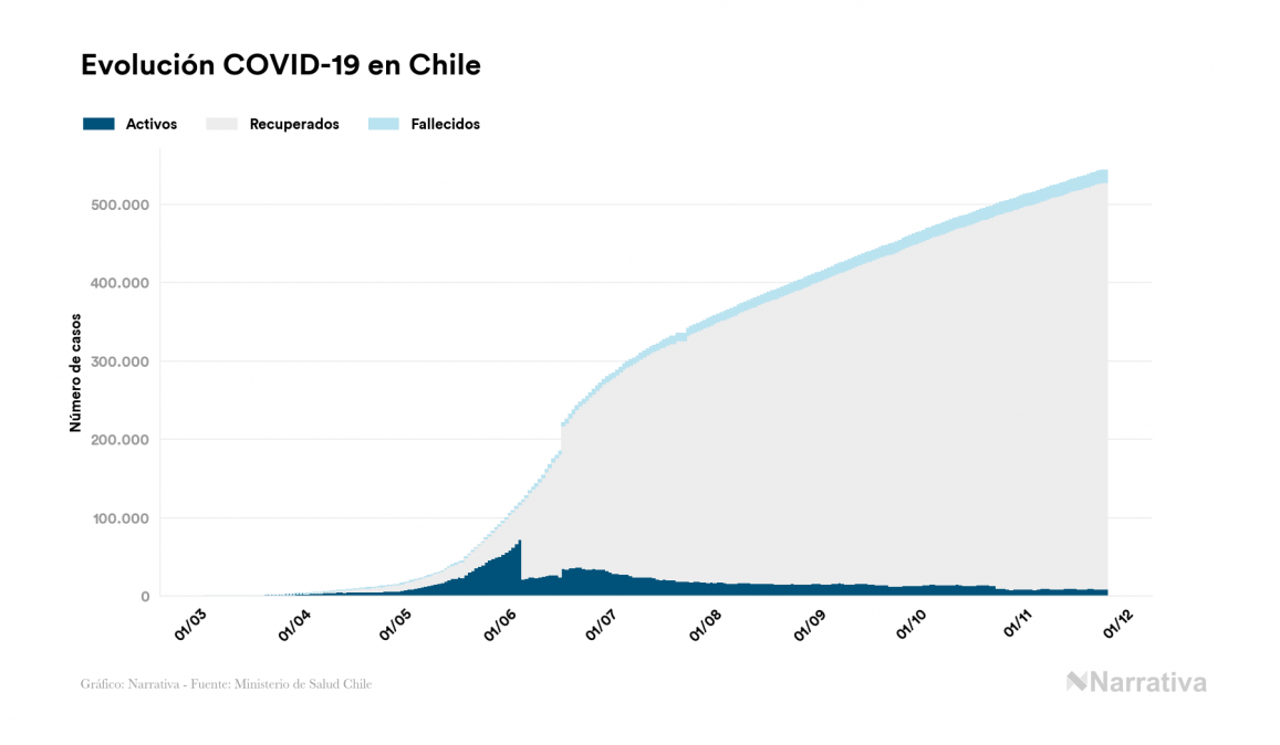 El coronavirus deja ya 543.087 casos de contagio en Chile, con 9.122 de ellos actualmente activos y 15.131 fallecidos, según los últimos datos correspondientes al 25 de noviembre. Además, un total de 518.834 personas ya se ha recuperado desde que se produjo el primer contagio en el país.