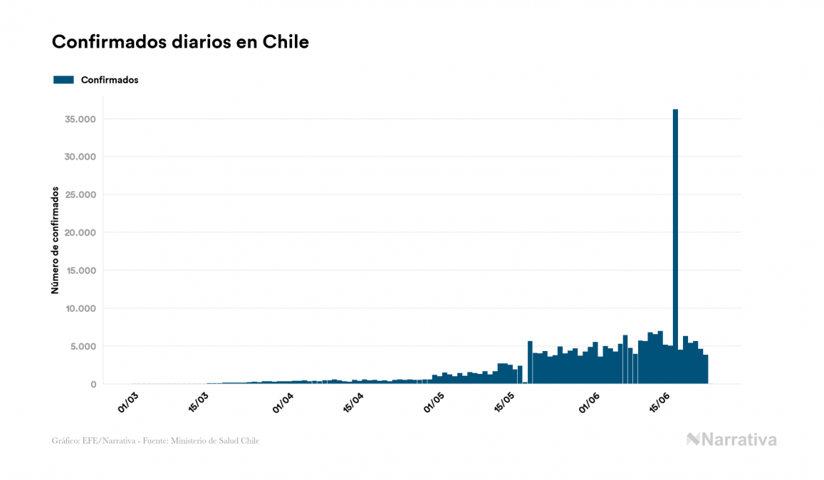 La COVID-19 deja ya 250.767 casos de contagio en Chile, con 35.692 de ellos actualmente activos y 4.505 fallecidos, según los últimos datos correspondientes al 24 de junio. Además, un total de 210.570 personas ya se ha recuperado desde que se produjo el primer contagio en el país.