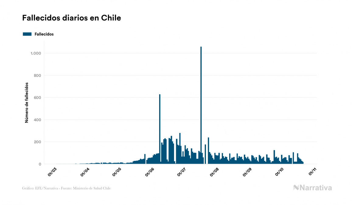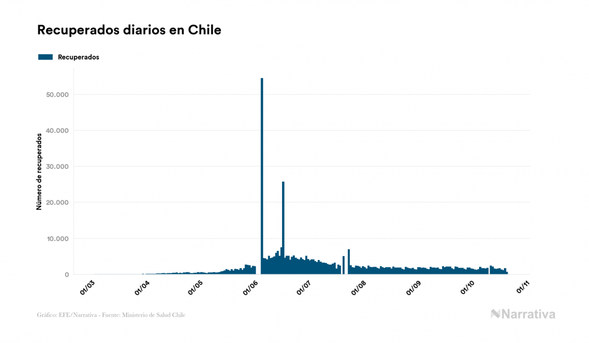 El coronavirus deja ya 495.637 casos de contagio en Chile, con 14.649 de ellos actualmente activos y 13.719 fallecidos, según los últimos datos correspondientes al 22 de octubre. Además, un total de 467.269 personas ya se ha recuperado desde que se produjo el primer contagio en el país.