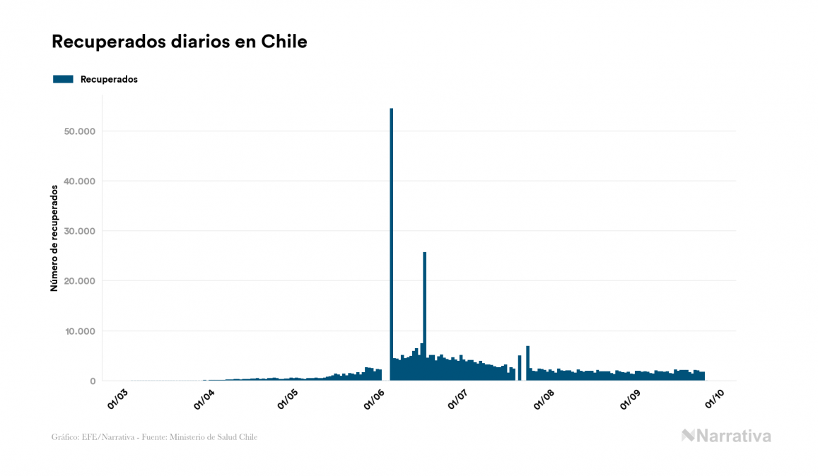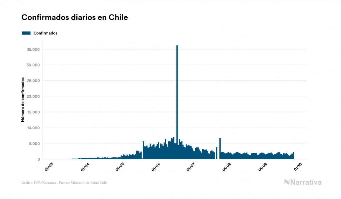 El coronavirus deja ya 453.868 casos de contagio en Chile, con 12.761 de ellos actualmente activos y 12.527 fallecidos, según los últimos datos correspondientes al 26 de septiembre. Además, un total de 428.580 personas ya se ha recuperado desde que se produjo el primer contagio en el país.