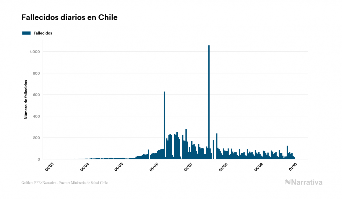 El coronavirus deja ya 462.991 casos de contagio en Chile, con 13.661 de ellos actualmente activos y 12.741 fallecidos, según los últimos datos correspondientes al 1 de octubre. Además, un total de 436.589 personas ya se ha recuperado desde que se produjo el primer contagio en el país.