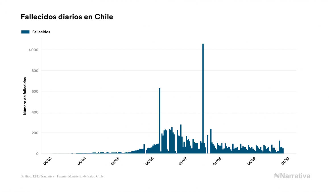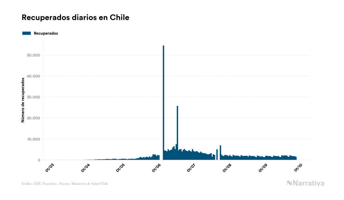 El nuevo coronavirus deja ya 457.901 casos de contagio en Chile, con 13.556 de ellos actualmente activos y 12.641 fallecidos, según los últimos datos correspondientes al 28 de septiembre. Además, un total de 431.704 personas ya se ha recuperado desde que se produjo el primer contagio en el país.