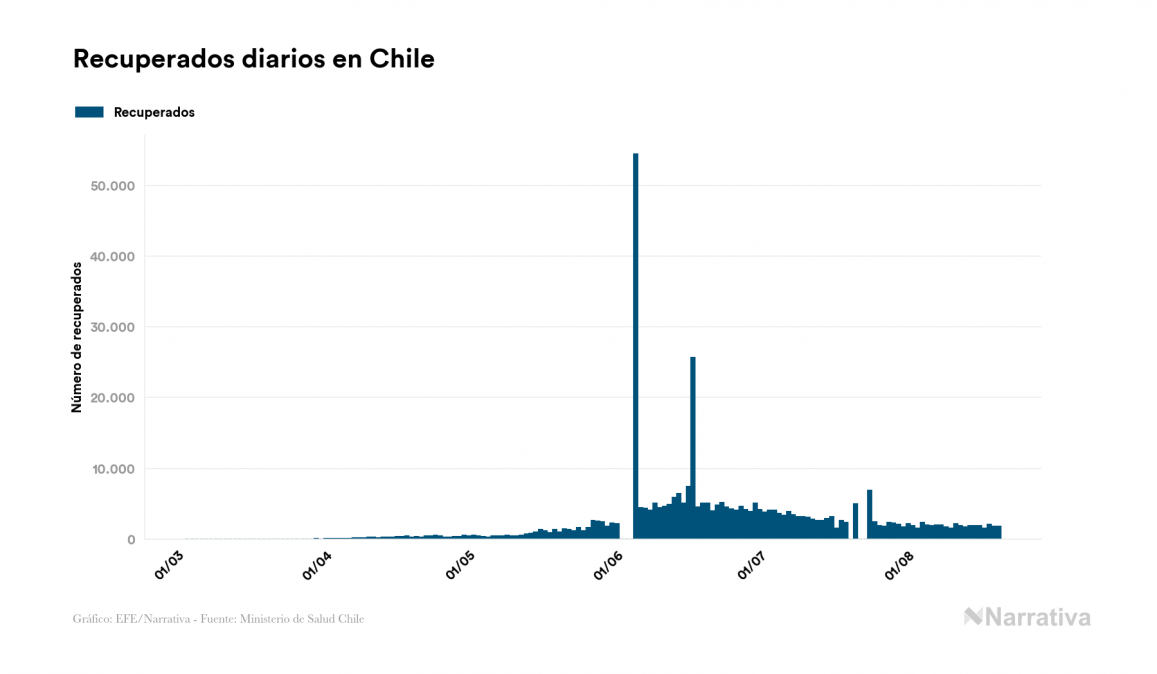 Según los últimos datos, actualmente en Chile hay 15.115 casos activos de COVID-19 tras confirmarse 1.812 nuevos positivos y 1.778 altas médicas este jueves. Desde el comienzo de la pandemia, el número total de contagiados asciende a 391.849, con 366.063 recuperados y 10.671 fallecidos.