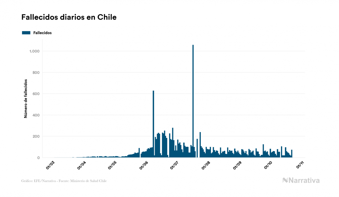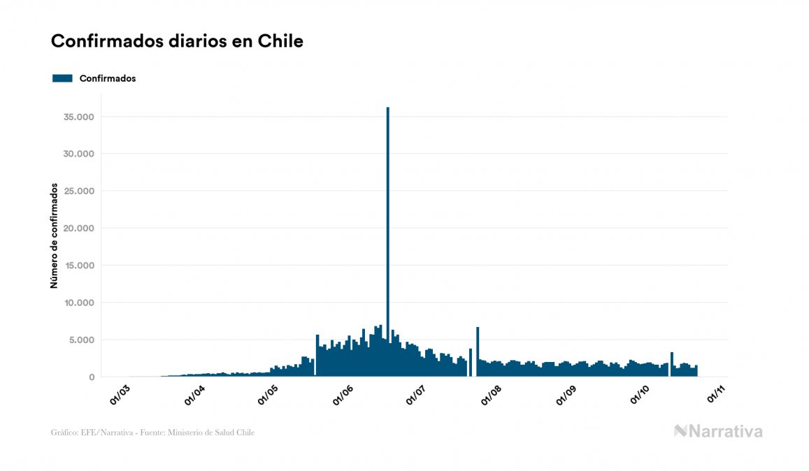 El nuevo coronavirus deja ya 497.131 casos de contagio en Chile, con 13.574 de ellos actualmente activos y 13.792 fallecidos, según los últimos datos correspondientes al 23 de octubre. Además, un total de 469.765 personas ya se ha recuperado desde que se produjo el primer contagio en el país.