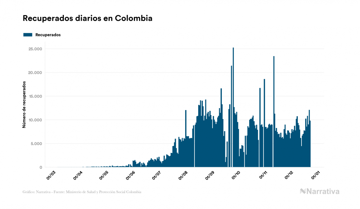 El coronavirus deja ya 1.544.826 casos de contagio en Colombia, con 99.484 de ellos actualmente activos y 41.174 fallecidos, según los últimos datos correspondientes al 24 de diciembre. Además, un total de 1.404.168 personas ya se ha recuperado desde que se produjo el primer contagio en el país.