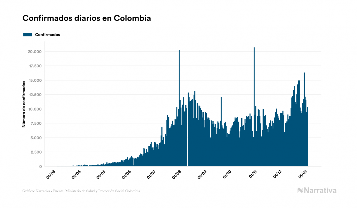 El nuevo coronavirus deja ya 1.686.131 casos de contagio en Colombia, con 89.765 de ellos actualmente activos y 44.187 fallecidos, según los últimos datos correspondientes al 5 de enero. Además, un total de 1.552.179 personas ya se ha recuperado desde que se produjo el primer contagio en el país.