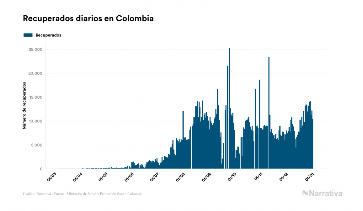 El nuevo coronavirus deja ya 1.666.408 casos de contagio en Colombia, con 91.670 de ellos actualmente activos y 43.765 fallecidos, según los últimos datos correspondientes al 3 de enero. Además, un total de 1.530.973 personas ya se ha recuperado desde que se produjo el primer contagio en el país.