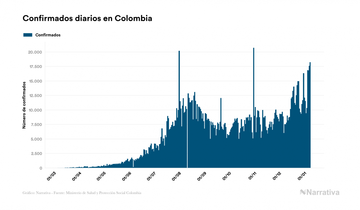 El nuevo coronavirus deja ya 1.755.568 casos de contagio en Colombia, con 112.977 de ellos actualmente activos y 45.431 fallecidos, según los últimos datos correspondientes al 9 de enero. Además, un total de 1.597.160 personas ya se ha recuperado desde que se produjo el primer contagio en el país.