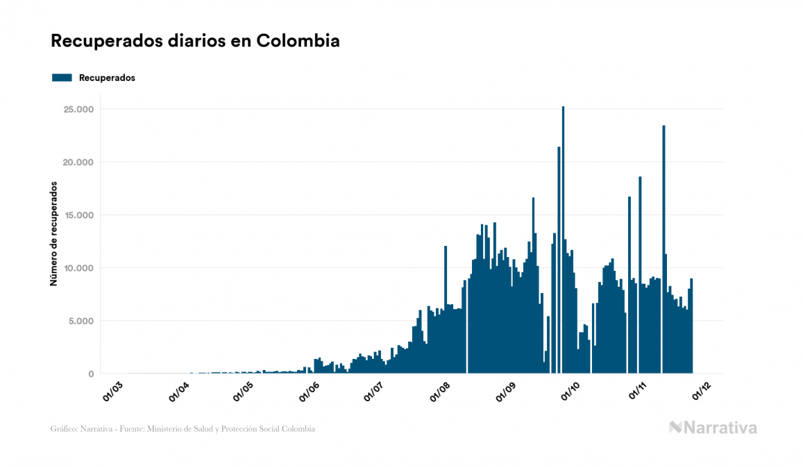 El nuevo coronavirus deja ya 1.262.494 casos de contagio en Colombia, con 58.960 de ellos actualmente activos y 35.677 fallecidos, según los últimos datos correspondientes al 25 de noviembre. Además, un total de 1.167.857 personas ya se ha recuperado desde que se produjo el primer contagio en el país.