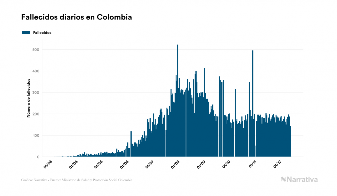 El coronavirus deja ya 1.434.516 casos de contagio en Colombia, con 73.852 de ellos actualmente activos y 39.195 fallecidos, según los últimos datos correspondientes al 15 de diciembre. Además, un total de 1.321.469 personas ya se ha recuperado desde que se produjo el primer contagio en el país.
