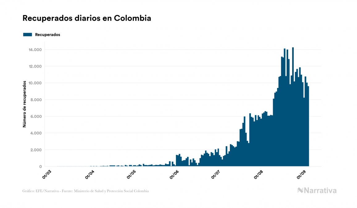 Colombia reduce su número de personas contagiadas por COVID-19 gracias al aumento de las altas hospitalarias, 9.583 en el último día