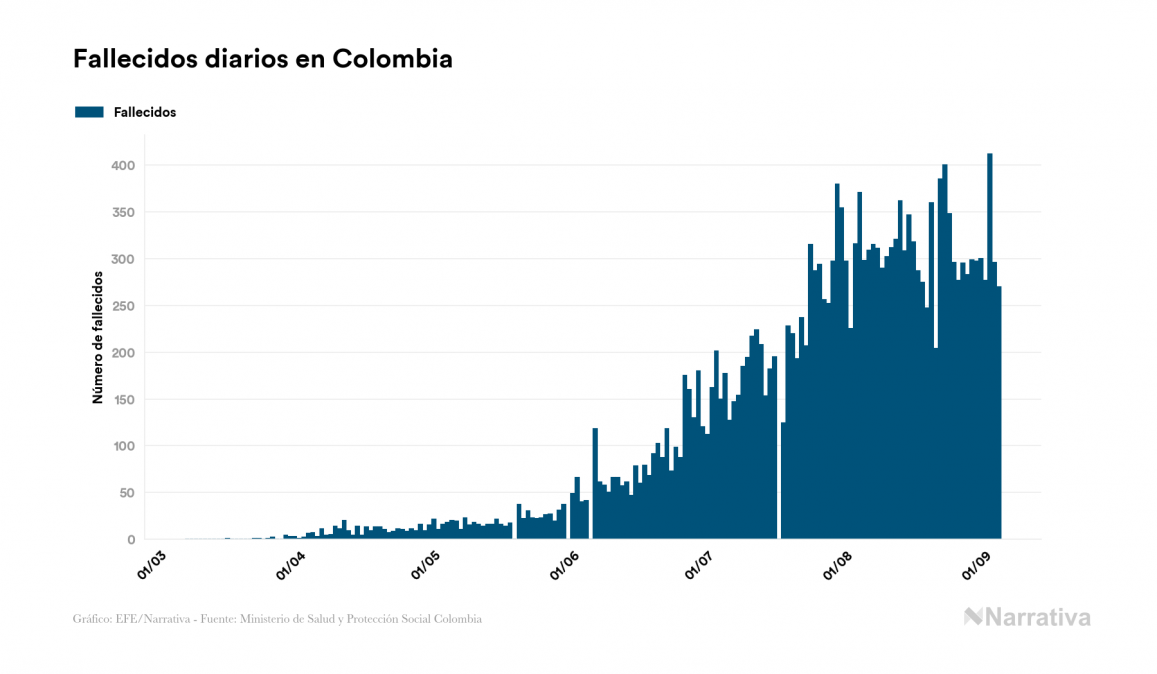 Según los últimos datos, actualmente en Colombia hay 131.805 casos activos de COVID-19 tras confirmarse 8.235 nuevos positivos y 9.583 altas médicas este viernes. Desde el comienzo de la pandemia, el número total de contagiados asciende a 641.574, con 489.151 recuperados y 20.618 fallecidos.
