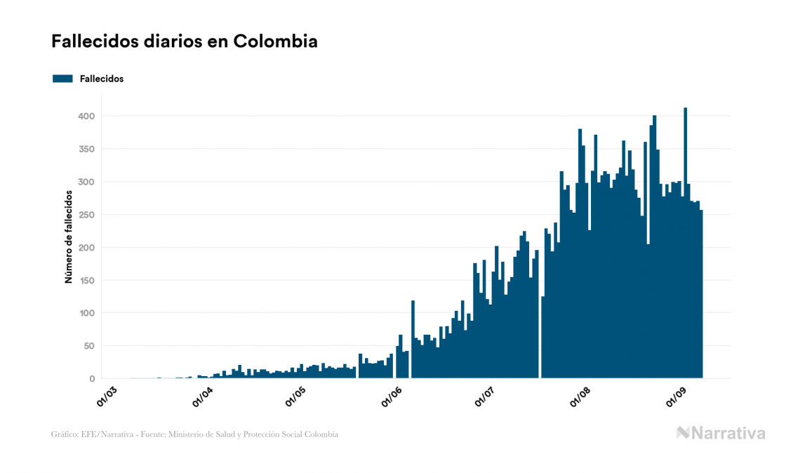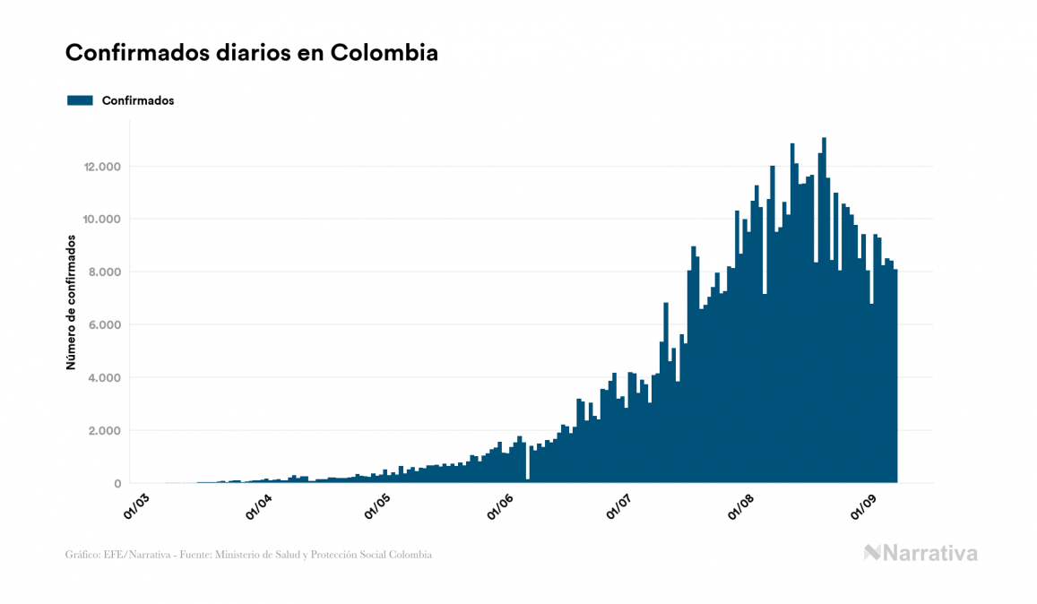 Según los últimos datos, actualmente en Colombia hay 126.880 casos activos de COVID-19 tras confirmarse 8.065 nuevos positivos y 10.459 altas médicas este lunes. Desde el comienzo de la pandemia, la cifra total de contagiados asciende a 666.521, con 518.229 recuperados y 21.412 fallecidos.