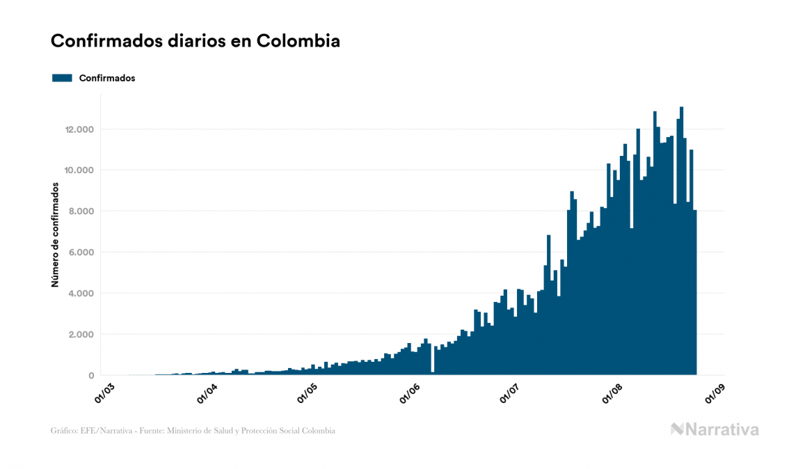 Colombia reduce su número de personas contagiadas por COVID-19 gracias a un aumento de los recuperados, 14.232 en el último día