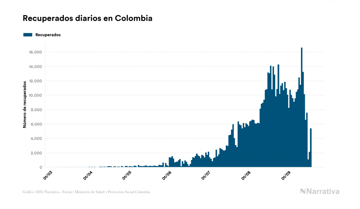 Según los últimos datos, actualmente en Colombia hay 104.823 casos activos de COVID-19 tras confirmarse 7.568 nuevos positivos y 5.379 altas médicas este viernes. Desde el comienzo de la pandemia, la cifra total de contagiados asciende a 743.945, con 615.457 recuperados y 23.665 fallecidos.