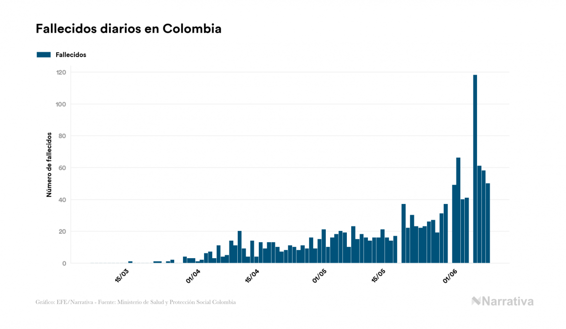 Colombia suma 50 muertos por COVID-19 en un día