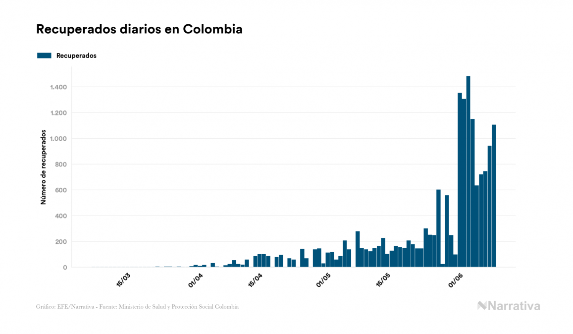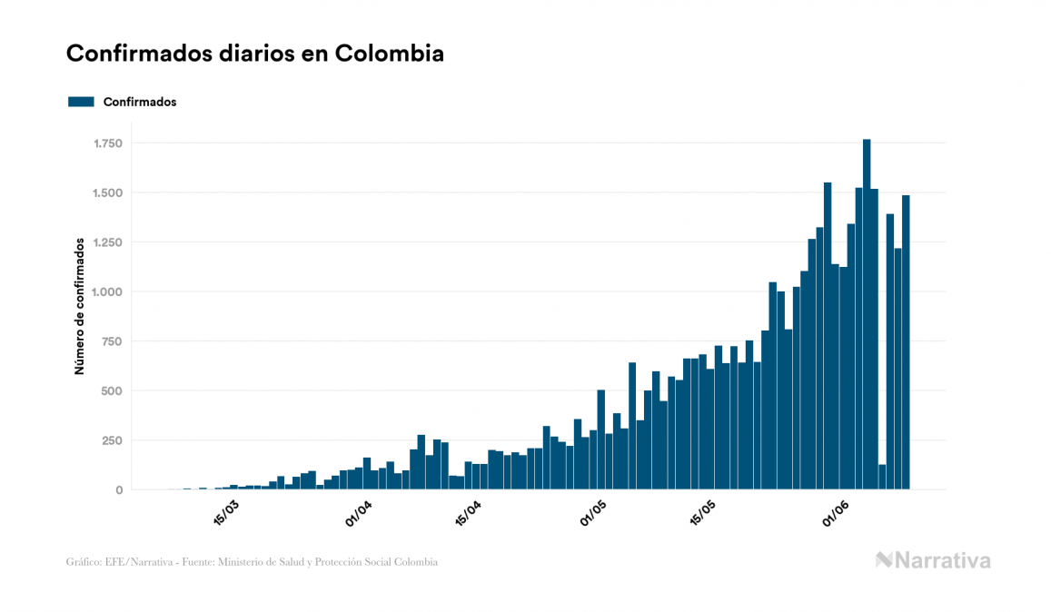 Según los últimos datos, actualmente en Colombia hay 23.015 casos activos de COVID-19 tras confirmarse 1.483 nuevos positivos y 1.105 altas médicas este martes. Desde el comienzo de la pandemia, el número total de contagiados asciende a 40.847, con 16.459 recuperados y 1.373 fallecidos.