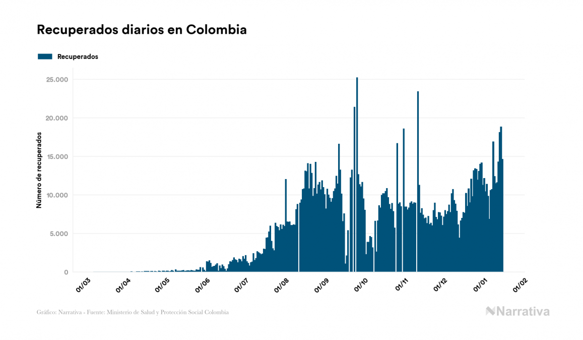 La COVID-19 deja ya 1.870.179 casos de contagio en Colombia, con 123.854 de ellos actualmente activos y 47.868 fallecidos, según los últimos datos correspondientes al 16 de enero. Además, un total de 1.698.457 personas ya se ha recuperado desde que se produjo el primer contagio en el país.