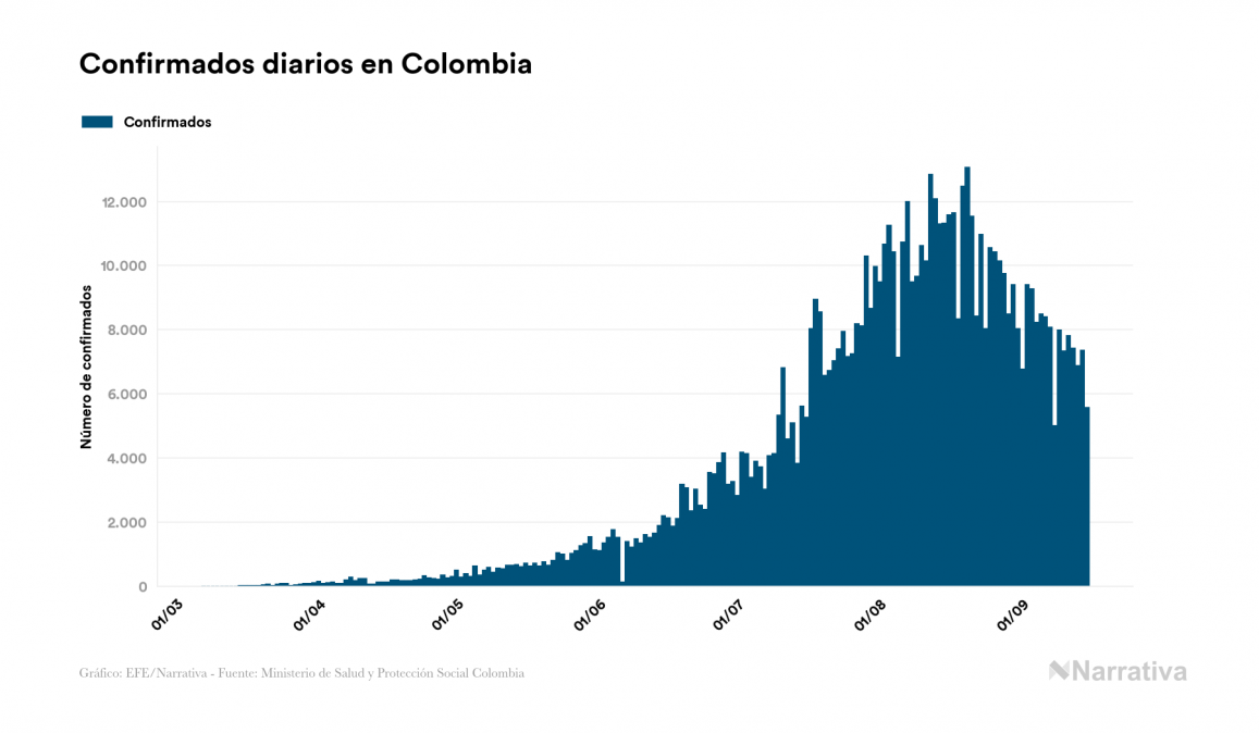 Coronavirus en Colombia: 721.892 contagiados y 23.123 fallecidos desde el primer contagio