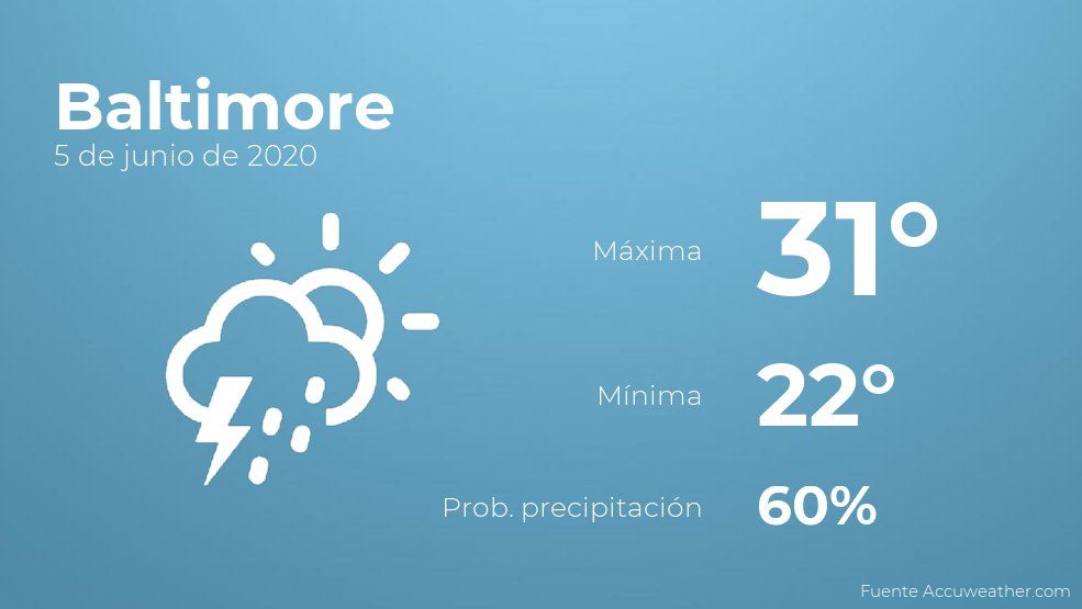 El clima para hoy en Baltimore, 5 de junio de 2020