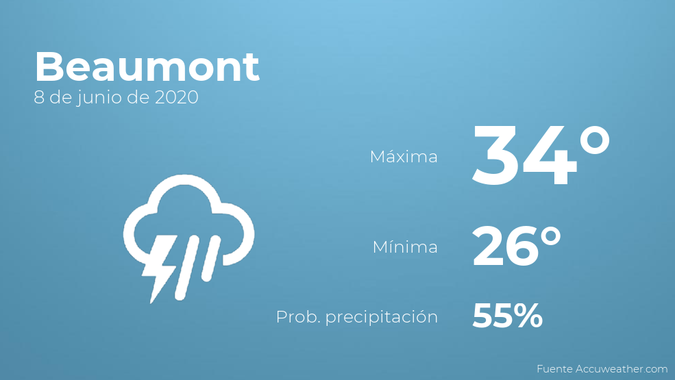 El clima para hoy en Beaumont, 8 de junio de 2020