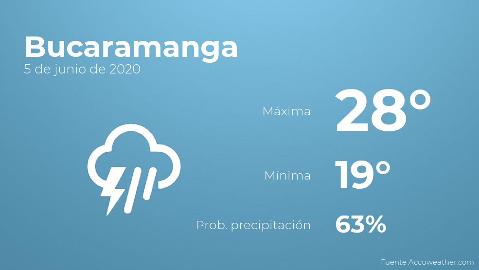 El clima para hoy en Bucaramanga, 5 de junio de 2020