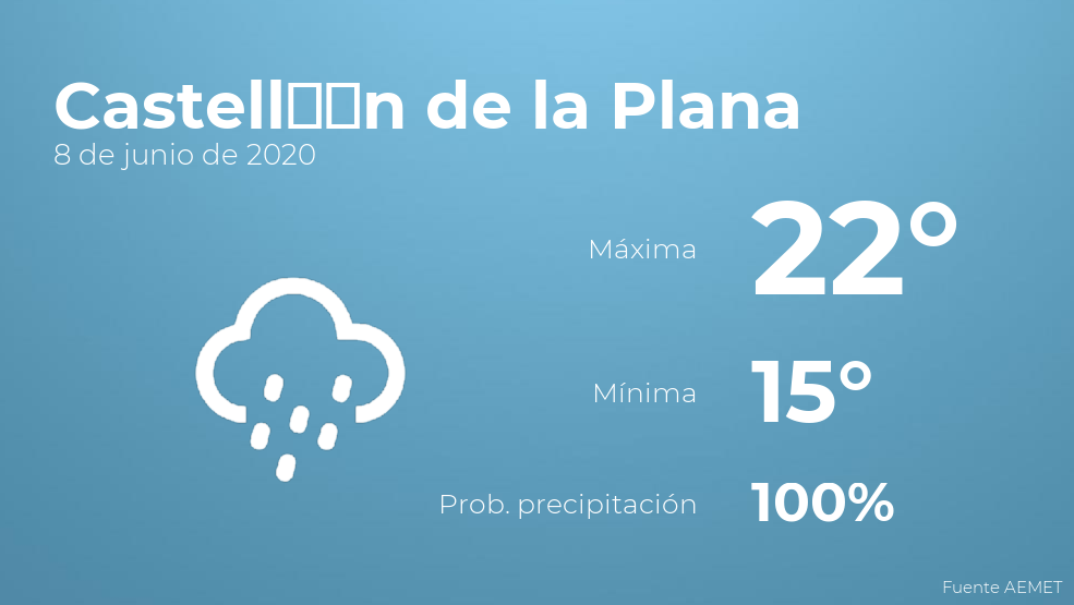 El clima para hoy en Castellón de la Plana, 8 de junio de 2020