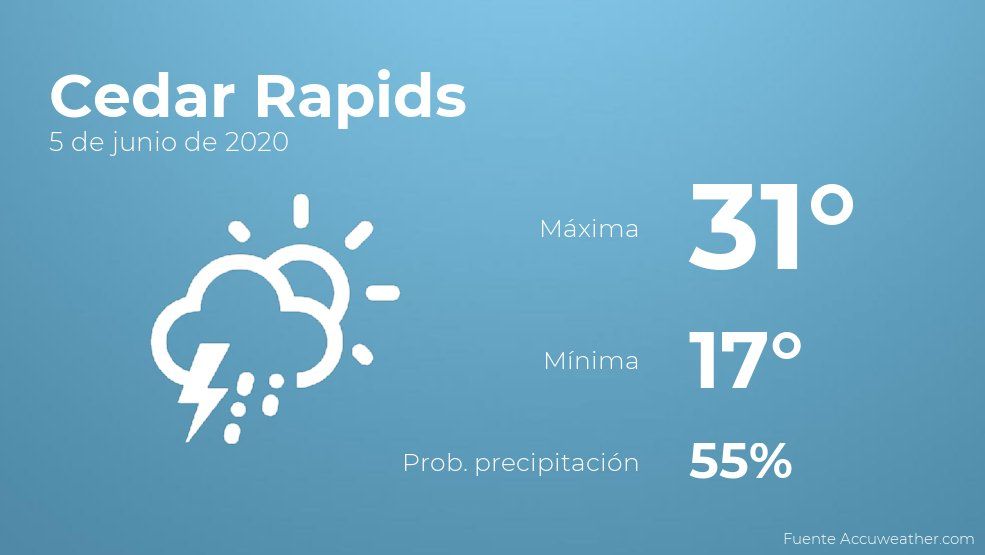 El clima para hoy en Cedar Rapids, 5 de junio de 2020