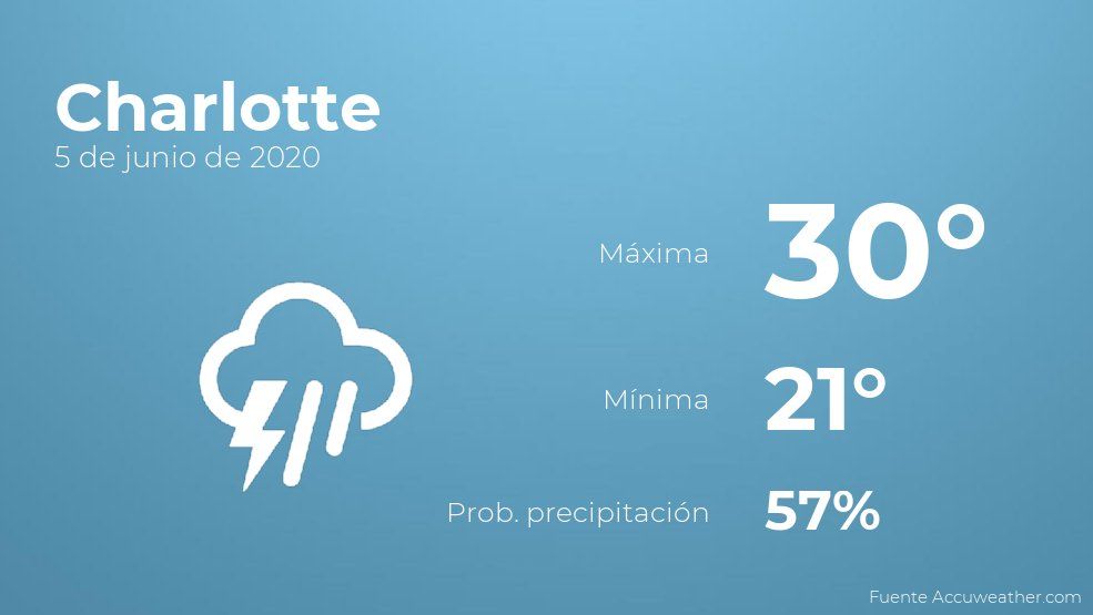 El clima para hoy en Charlotte, 5 de junio de 2020