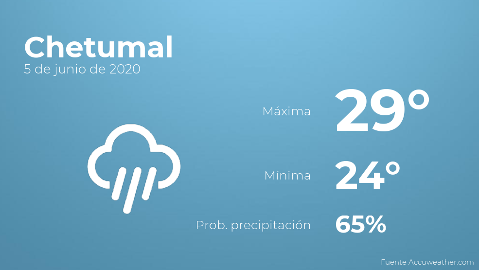 El clima para hoy en Chetumal, 5 de junio de 2020