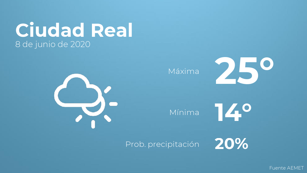 El clima para hoy en Ciudad Real, 8 de junio de 2020