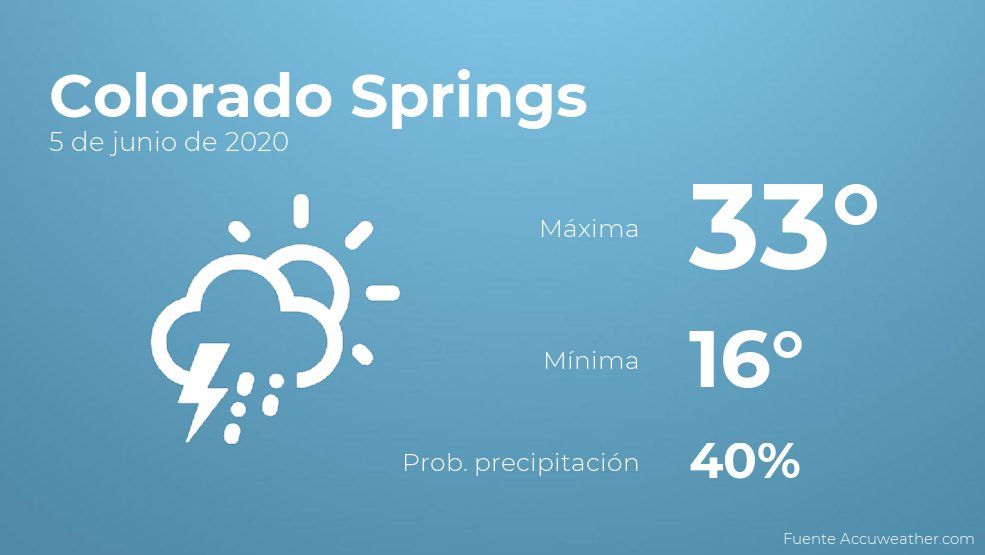 El clima para hoy en Colorado Springs, 5 de junio de 2020