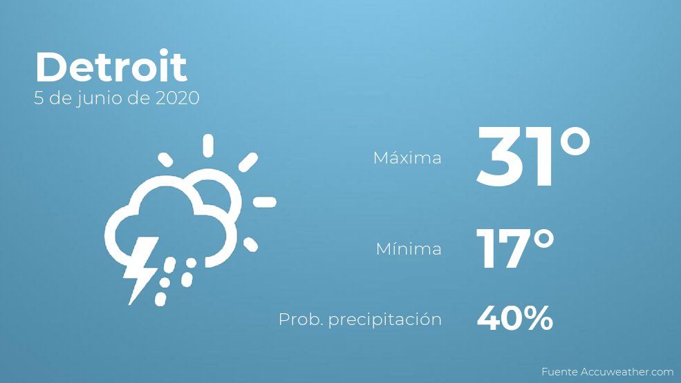 El clima para hoy en Detroit, 5 de junio de 2020