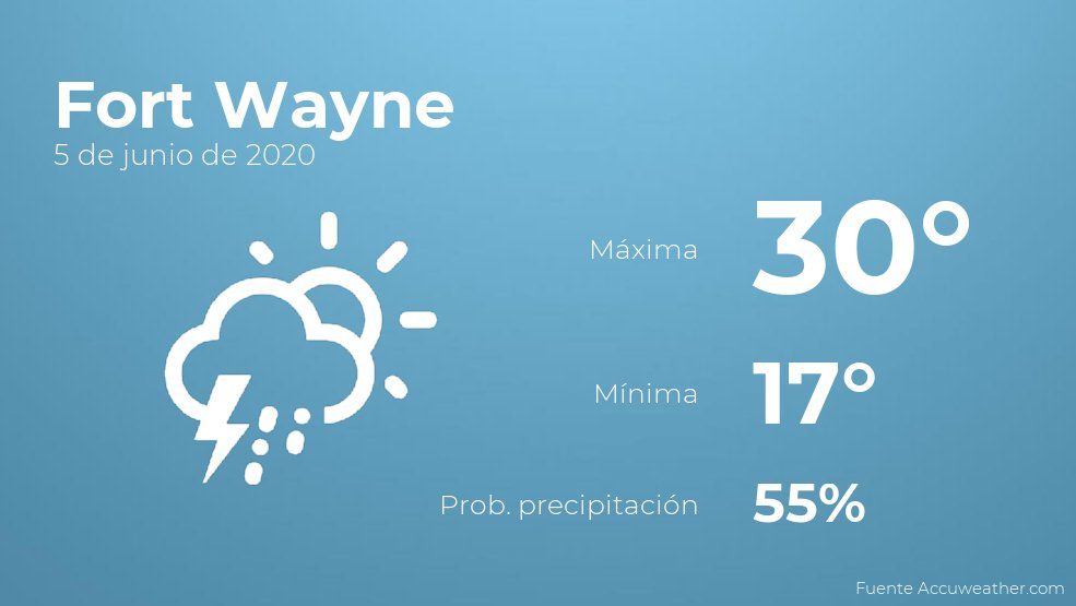 El clima para hoy en Fort Wayne, 5 de junio de 2020