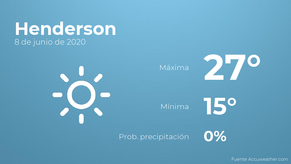 El clima para hoy en Henderson, 8 de junio de 2020