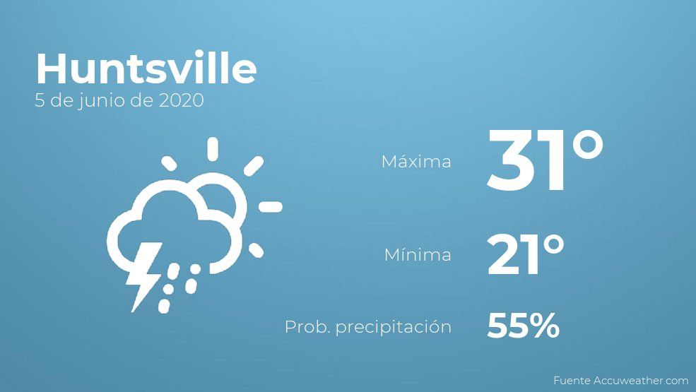 El clima para hoy en Huntsville, 5 de junio de 2020