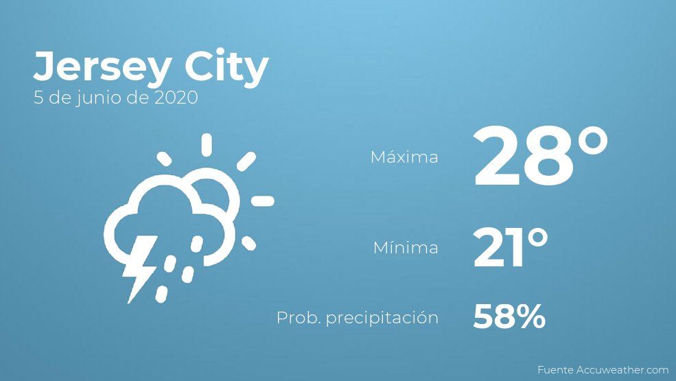 El clima para hoy en Jersey City, 5 de junio de 2020