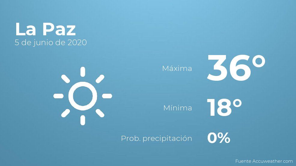 El clima para hoy en La Paz, 5 de junio de 2020
