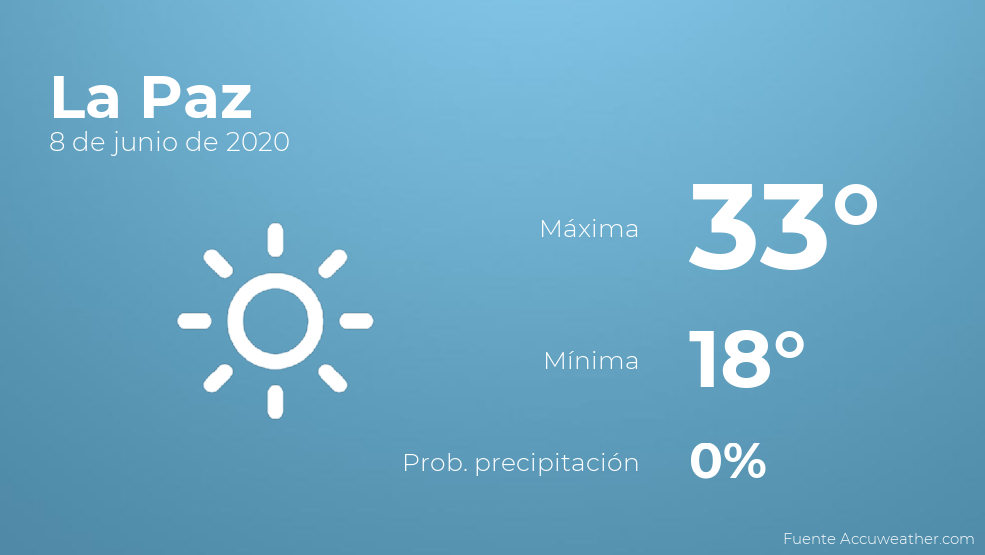 El clima para hoy en La Paz, 8 de junio de 2020