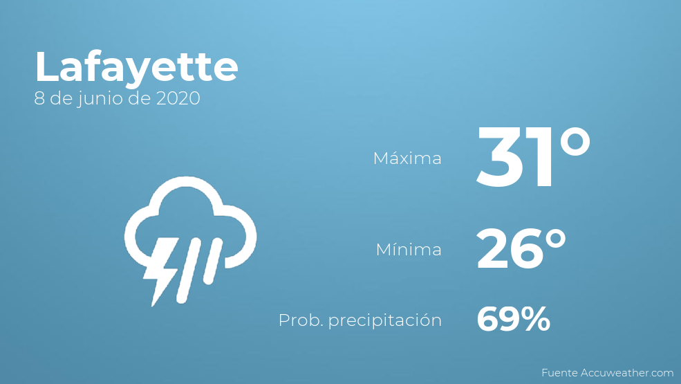 El clima para hoy en Lafayette, 8 de junio de 2020